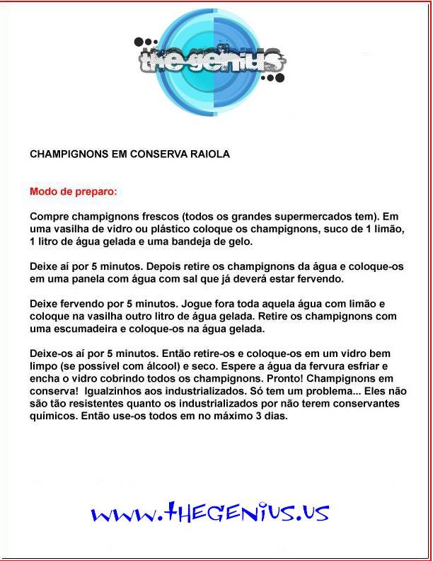 Ingredientes: 2 ou 3 mamões verdes; Açúcar; Cascas de limão. Preparo: Tome dois ou três mamões verdes, risque-os com a ponta de uma faca para que percam o leite. Passada uma hora mais ou menos, corte-os em pedaços, tire-lhes as sementes, raspando-os um pouco por dentro e rale todos os pedaços num ralo de ralar coco, sem lhes tirar a casca. Depois de ralado todos os pedaços, deixe de molho até o dia seguinte. Escorra então muito bem, meça a massa em pratos fundos e junte-lhes tantos pratos fundos de açúcar quantos forem os de massa e leve ao fogo com um pouco de água e cascas de limão. Deixe cozinhar em fogo brando, mexendo de vez em quando. Quando começar a secar, mexa sem parar até aparecer o fundo da panela. Deixe esfriar e guarde em compoteiras. |