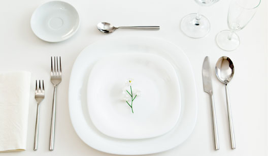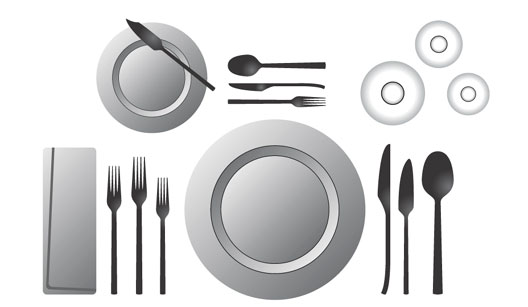 Utensílios para arrumarmos a mesa para uma refeição do dia a dia: